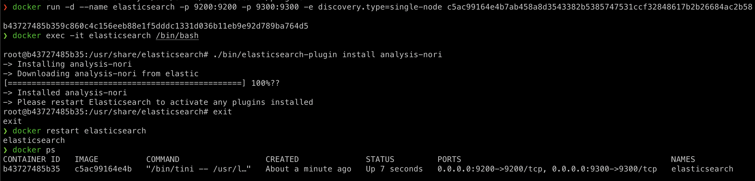 > bash -c " bin/elasticsearch-plugin install analysis-nori;